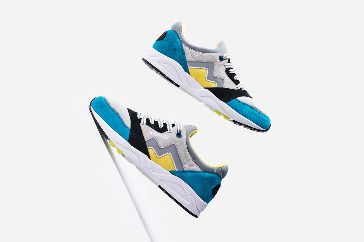 Originally from Helsinki, the Karhu brand was imagined in a small workshop back in 1916. Initially known for their production of javelins, skis and discuses, running-shoes were introduced shortly thereafter. Sported by the first “Flying Finn”, Hannes Kolehmainen, Karhu monopolized tracks around the world. Moreover, Paavo Nurmi achieved 9 Olympic gold medals in 1920. As time went on, the three-stripes stuck around and by the 1960s, the M-logo was created, standing for “Mestari”, meaning “champion”. In all its glory, the Karhu Aria stands for that exactly. This runner from 1995 is now considered a lifestyle silhouette, yet featuring technological specs such as a midsole carbon fibre fulcrum as well as a bootie-like upper, allowing for a snug fit and look.