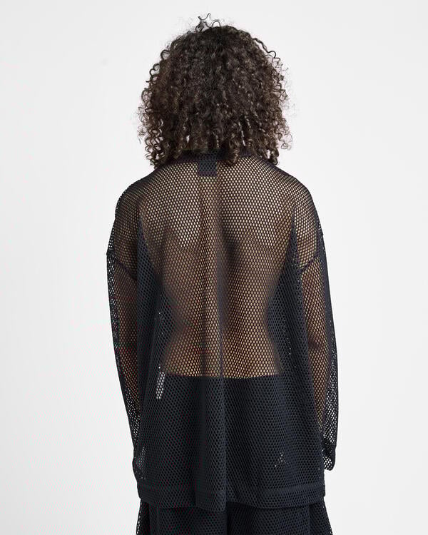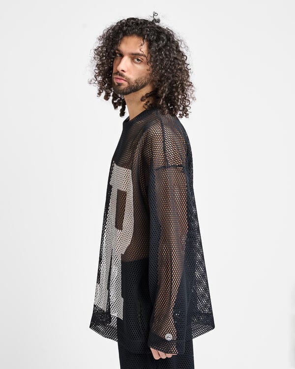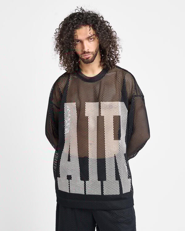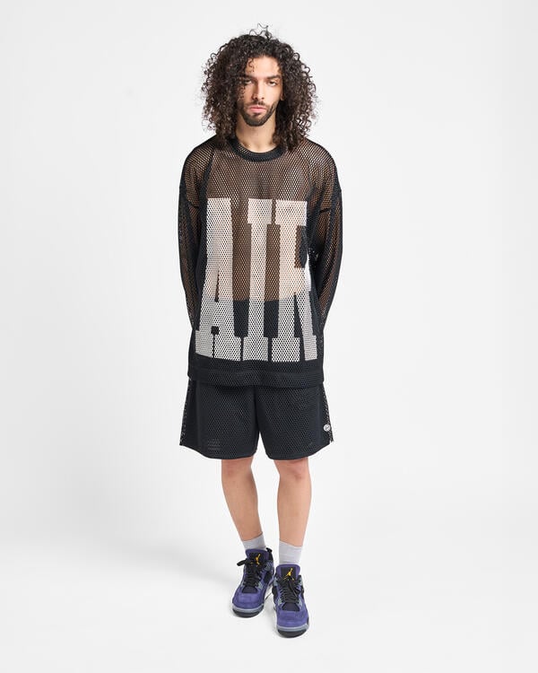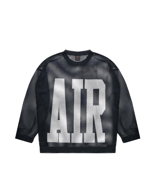 Hiroshi from Fragment Design and Chris Gibbs from Union Los Angeles both have strong backgrounds in streetwear, so we let them do what they do best: blur the lines between fashion and sport. We started with an oversized, boxy long-sleeve t-shirt fit, but made it using a wide gauge mesh and adorned it with “Air” for Air Jordan.