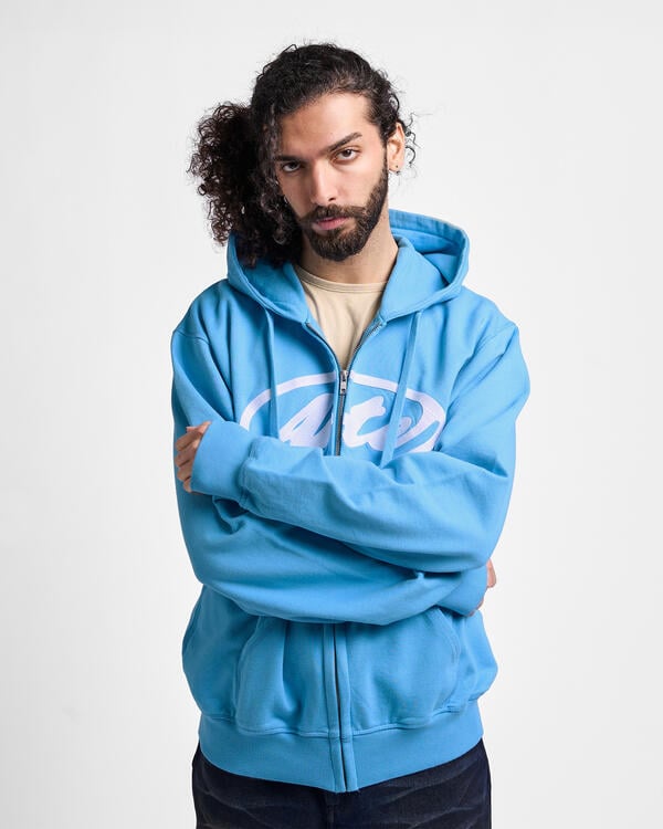 Made from premium heavyweight cotton, the zip hoodie features this season's take on the Arte logo embroidered in white across the chest. The blue hoodie has a relaxed fit and is finished with a full-length zipper, drawstring cords and two side pockets.
