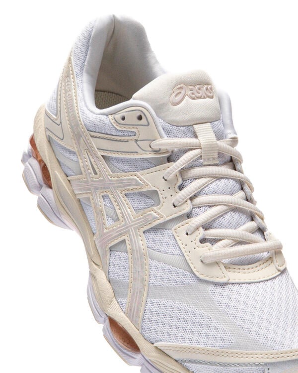 The GEL-CUMULUS 16eaker was first launched in 2014 and was previously known for its gentle cushioning when running longer distances. Its upper construction features a combination of glossy synthetic leather overlays, seamless inserts, and open mesh underlays. This fusion of materials creates a technical aesthetic that is symbolic of the advanced running shoes of the 2010s.