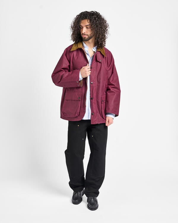 In 1980, Barbour produced its first short, lightweight jacket, the Bedale design. Originally designed for equestrian sports, it is popular throughout the UK, from royalty to pop legends. CEO Margaret Barbour designed the Bedale jacket with practical equestrian details such as a shorter length, a comfortable fit, back vents, and the essential nylon water drainage inside, which protects the jacket from the steam of the horses' bodies. The Bedale is made from medium-weight 6oz waxed cotton with functional features such as a warm zip-in inner jacket and hood, and can be worn all year round. All the classic elements are here, including a two-way zipper with brass pull tab, a windproof snap fastener flap, two large bellows pockets and two slit pockets with moleskin lining, as well as the traditional corduroy collar with concealed storm flap and snap fasteners.