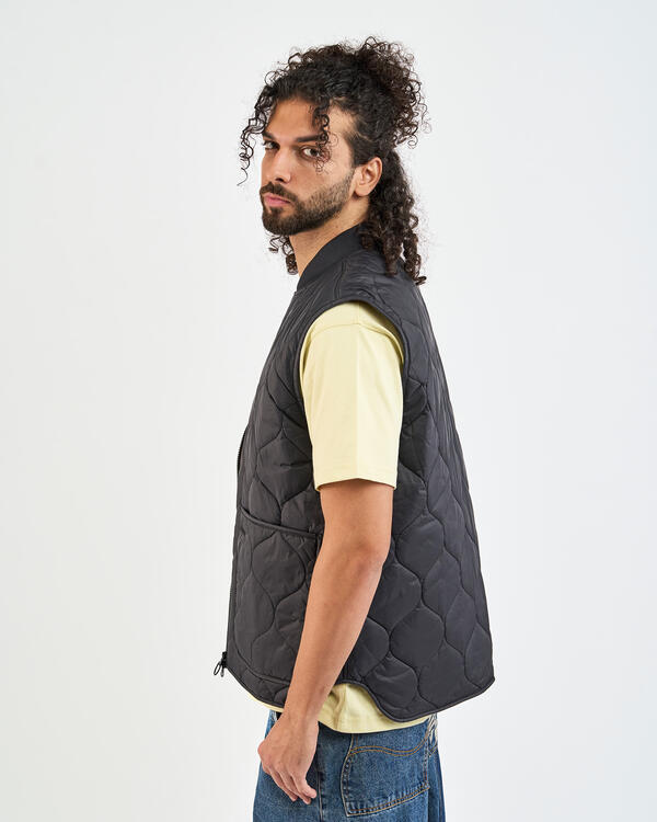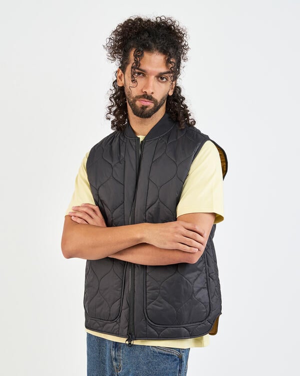 The Barbour Re-Engineered Utility Liddesdale vest keeps you warm in style. The design features a timeless onion-shaped quilted pattern and practical details such as patch pockets and a secure zippered pocket on the sleeve.