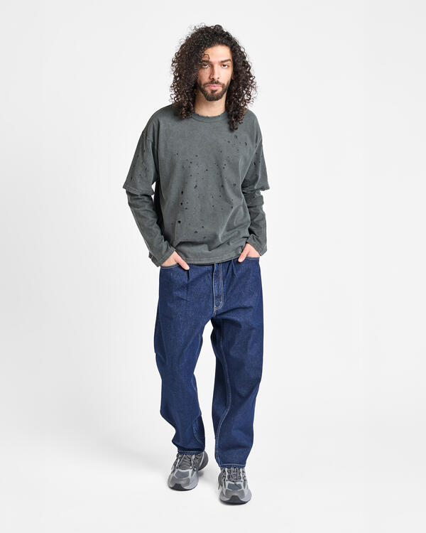 These long-selling denim pants BEAMS are a classic favorite that can be worn with a variety of styles. They feature a wide silhouette, but the beautiful tapered hem is the highlight. They are suitable for a wide range of styles, from casual to streetwear and workwear.