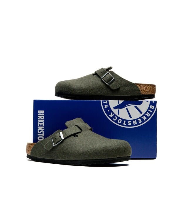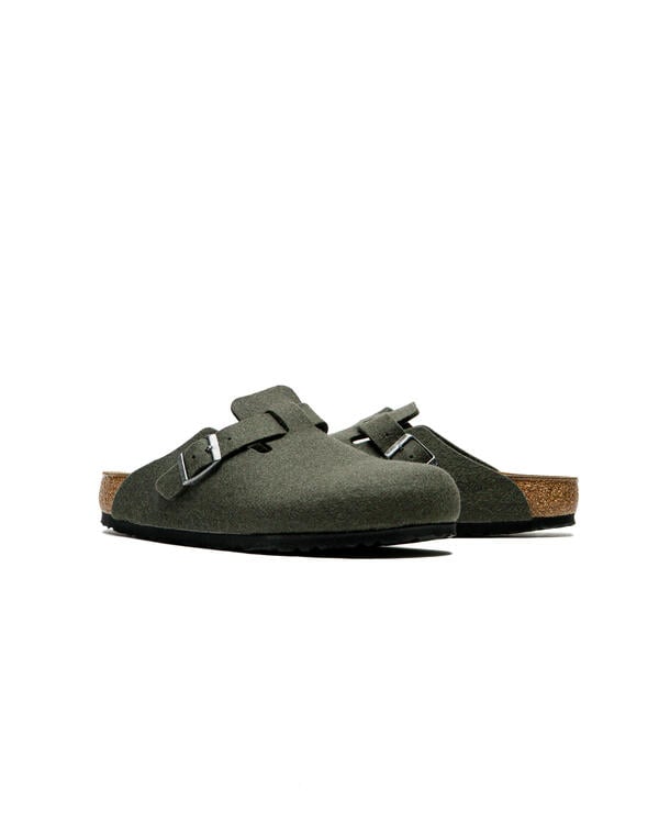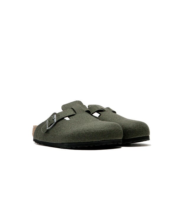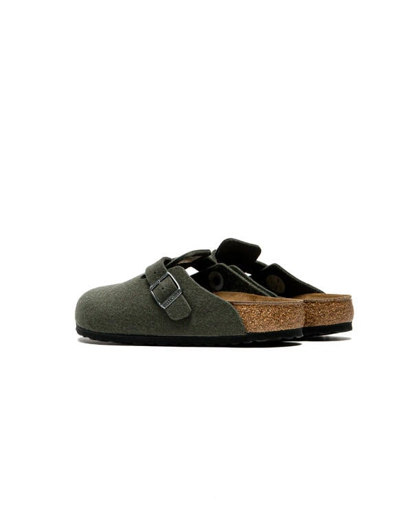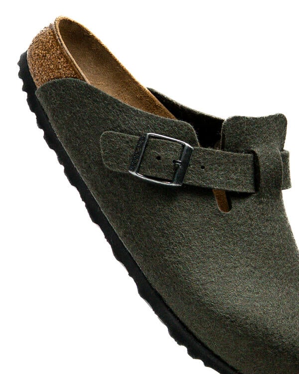 The Boston clog, a classic among BIRKENSTOCK models, features a soft, high-quality wool felt upper. The integrated strap and sturdy metal buckle allow the clog to be individually adjusted to fit any foot.