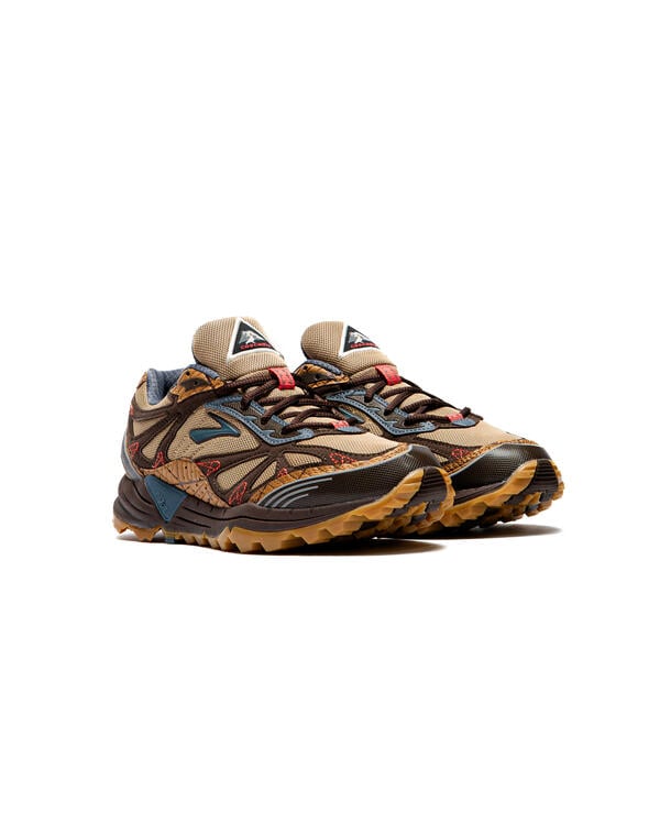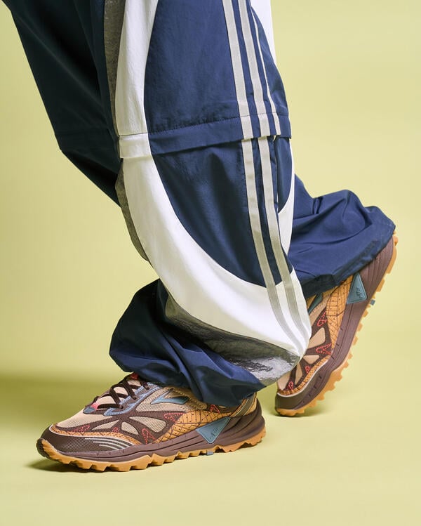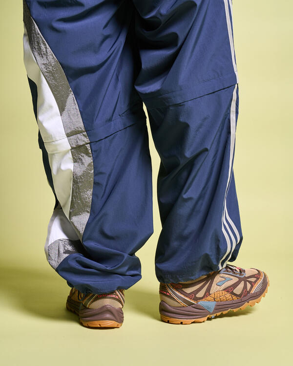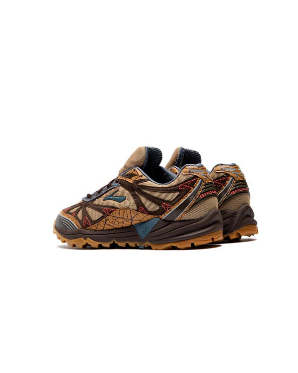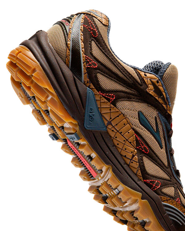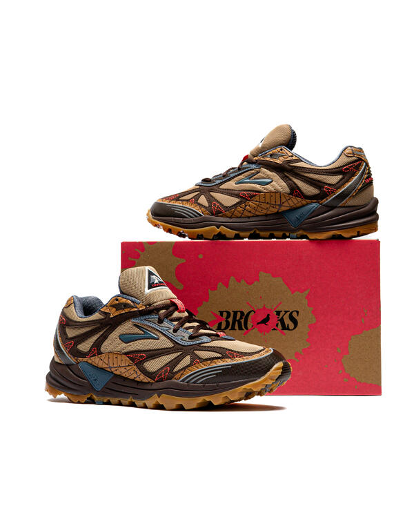 Legendary streetwear designer Jeff Staple cracks open the Brooks vault to relaunch the Cascadia trail runner from 2004. Previewed at Paris Fashion Week, earthy tones take center stage with a mix mesh, suede and webbed overlays. Red stitching ties everything together, lifting the style from the trail to the street.