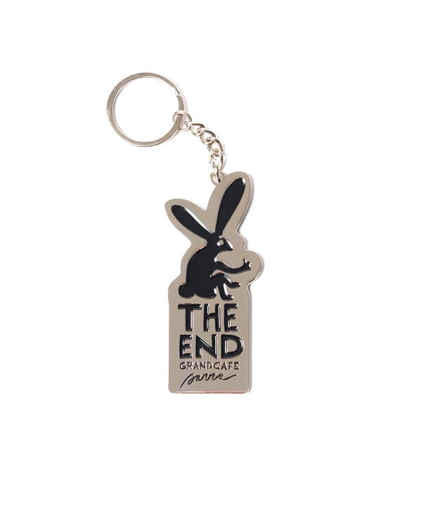 Enamel metal key chain with "Grand cafe bunny" artwork.