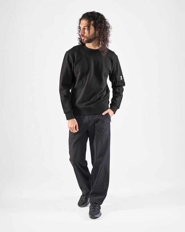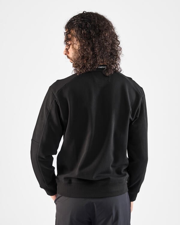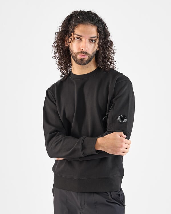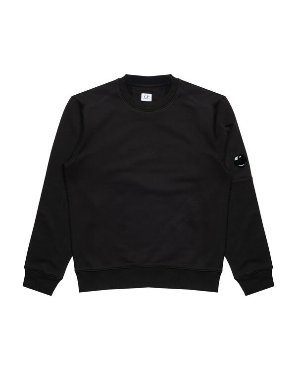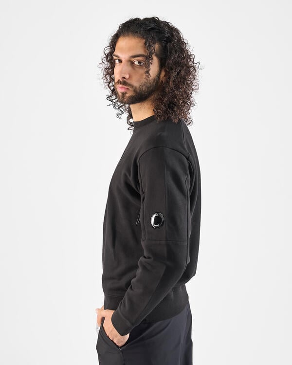 Round neck sweatshirt made from diagonal raised fleece, a medium-weight brushed cotton fabric with a diagonal weave. The soft fabric ensures comfort and freedom of movement. The sweatshirt features an embroidered logo detail on the back of the neck, the iconic C.P. Company lens, and ribbed cuffs and hem.