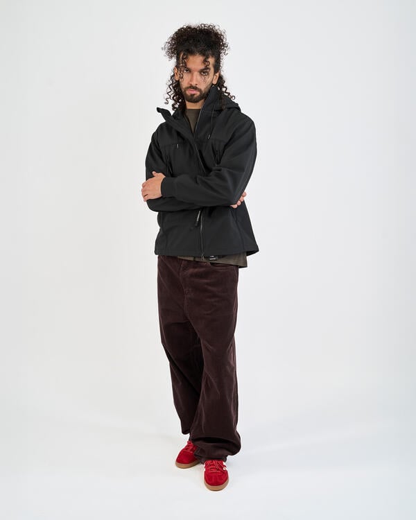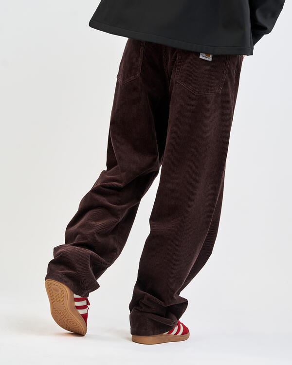 The Landon Pant is made from “Coventry” corduroy with 8 ribs per inch, a medium-weight cotton fabric with thick ridges. It has a relaxed tapered fit with a regular rise, meaning the pants are roomy around the thigh and taper below the knee. The five-pocket pants are finished with a square label on the back pocket.