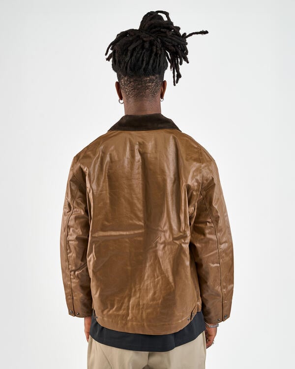 The OG Dean Jacket is made from heavy cotton canvas with a quilted lining. There are two slit pockets on the front and a chest pocket on the inside. The style also features adjustable cuffs. A woven square label completes the design.