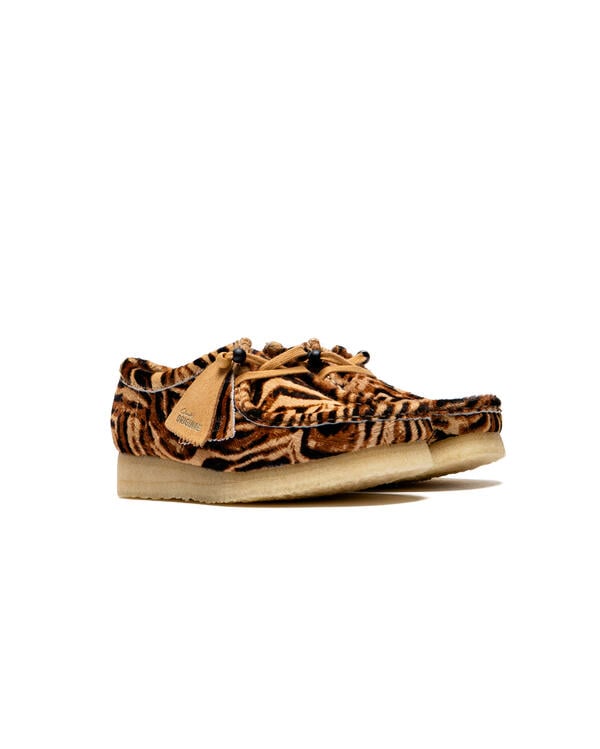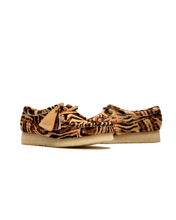 This special edition of the Wallabee features high-quality upper materials with a tiger print pattern that combines traditional craftsmanship with eye-catching design. Natural crepe soles and flat laces with beads provide a perfect subtle contrast to the textured upper material inspired by wild animals.