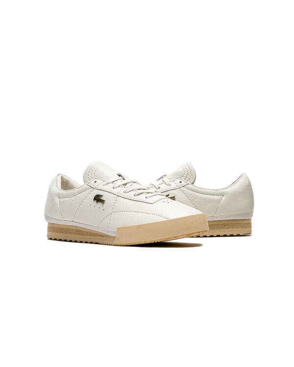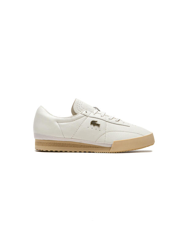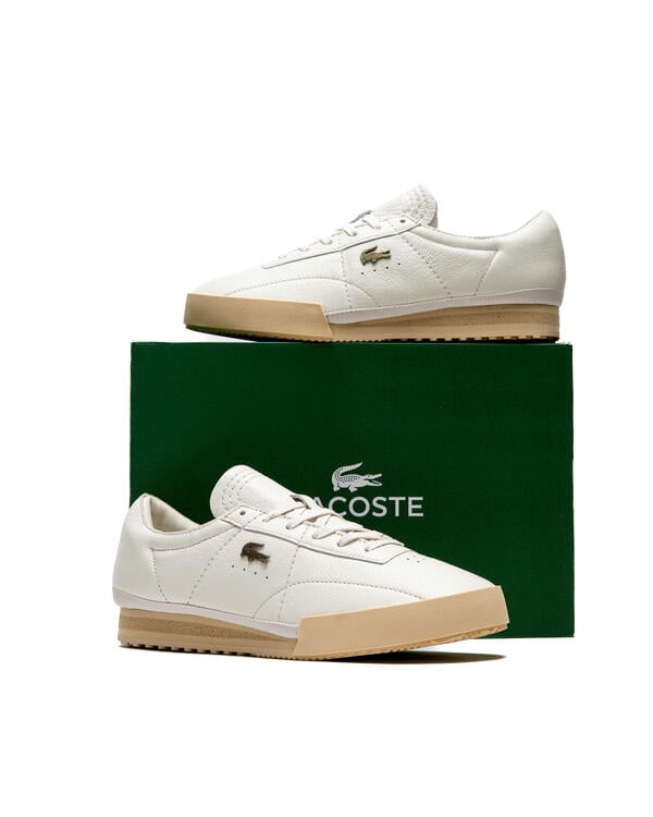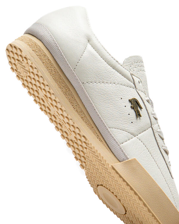 The elegant Aura sneakers combine legendary Lacoste details with the terrace style of the 1970s. With upper material made of simple, single-color, high-quality leather with subtle decorative stitching and a metal crocodile on the quarter. A timeless and sporty style with a contrasting retro sole.
