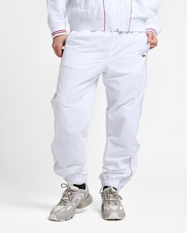 These track pants are part of an exclusive capsule collection from the Lacoste design archives. Made from lightweight, water-repellent, breathable, windproof and textured nylon fabric. With ergonomic details and subtle contrast edging for a bold and sporty look.