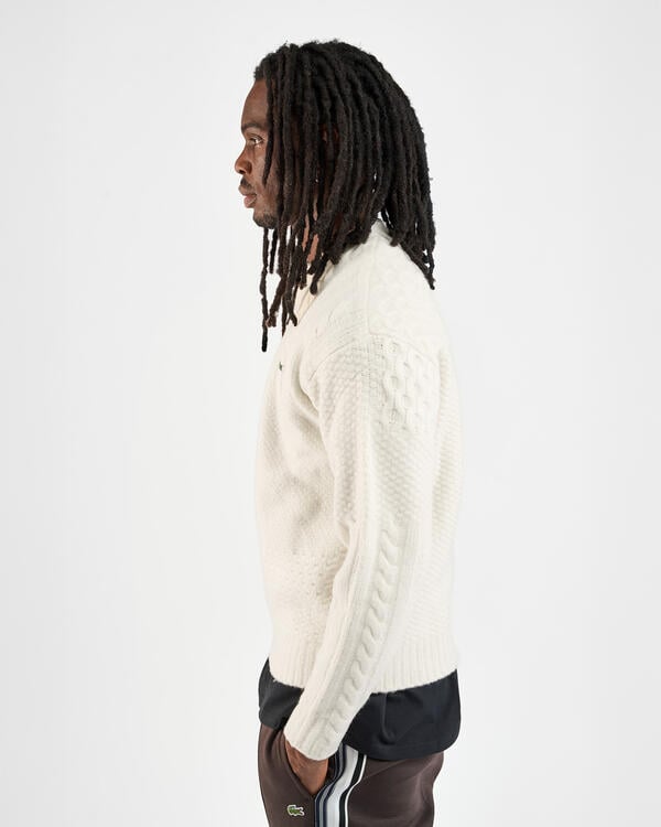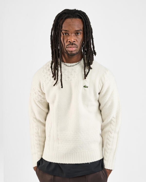 This sweater is the result of 90 years of elegant knitting experience from Lacoste. Made from warm and fluffy wool with a loose fit and sophisticated patchwork design, achieved through different knitting techniques. An elegant piece with high-quality details and embroidered signature crocodile.