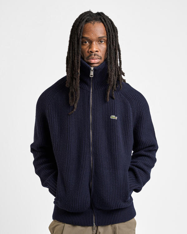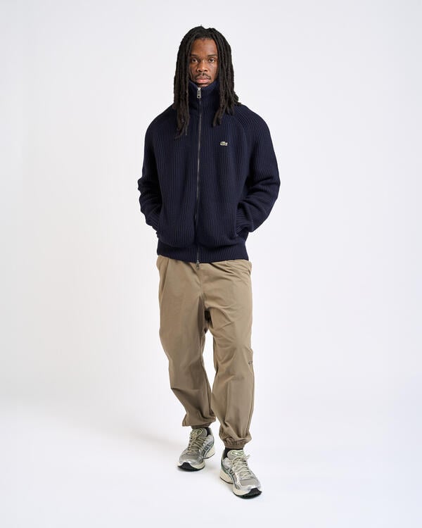 This high-neck sweater is the result of 90 years of knitting expertise and elegance from Lacoste. Made from soft and warm wool fabric with a refined pearl rib knit and subtle shading on the sleeves. A timeless design with an embroidered signature crocodile and ergonomic details such as a two-way zipper.