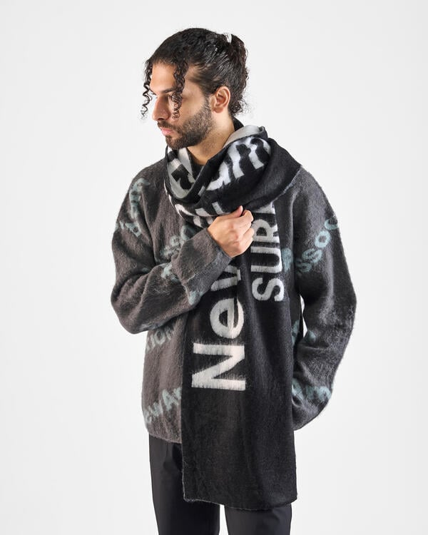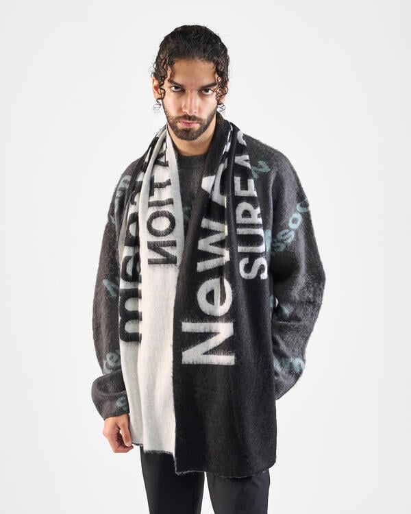 Wrap up in the Fuzzy Logo Scarf. Made from a soft wool-nylon-acrylic blend, it features a plush fuzzy texture and signature logo design. This cozy, unisex scarf combines warmth with comfort. The perfect accessory for both streetwear and everyday winter looks.