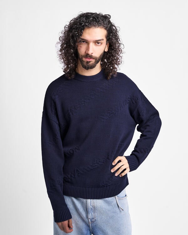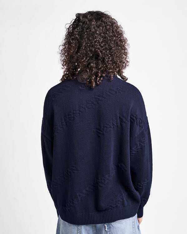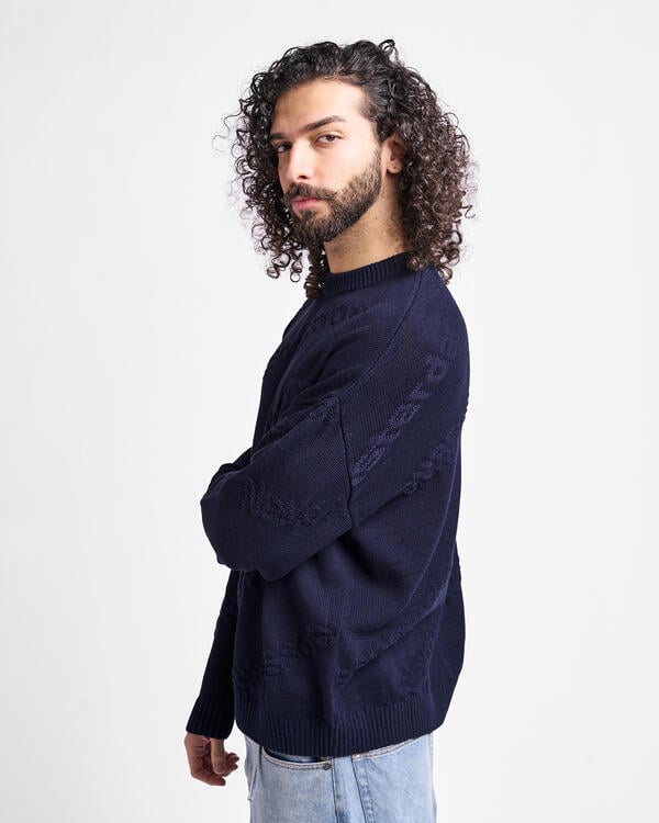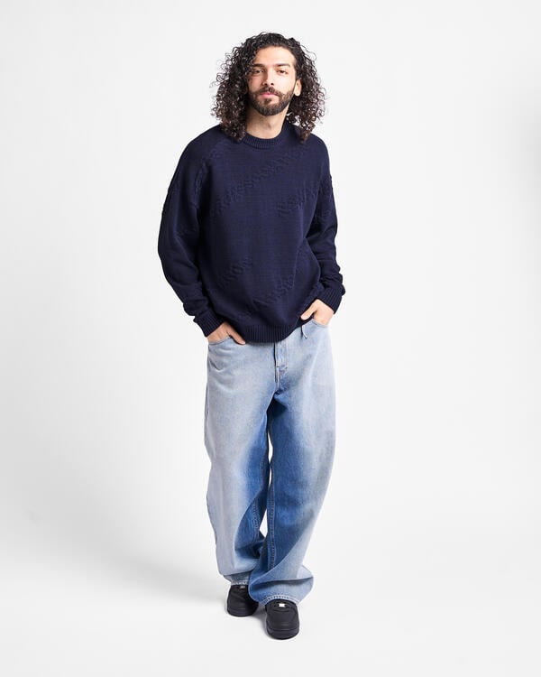 The Jacquard Knit by New Amsterdam Surf Association is a unisex crewneck sweater featuring an all-over jacquard logo design. Made from a soft blend of wool/cotton, it provides warmth, comfort, and long-lasting durability. Its re- laxed fit and bold branding make it a versatile piece, perfect for both city streetwear and casual coastal style.