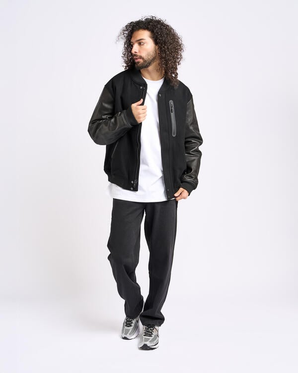 The Destroyer jacket brings luxury to an iconic silhouette. Full-grain leather in the arms pairs with the wool body for that always on varsity look. Inside, a smooth woven lining keeps things sleek and comfortable.