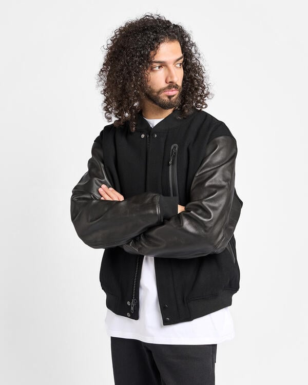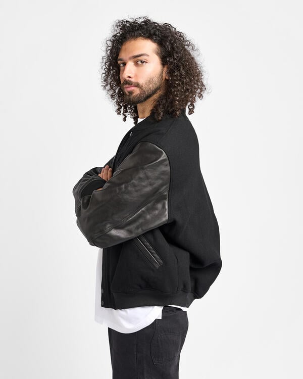 The Destroyer jacket brings luxury to an iconic silhouette. Full-grain leather in the arms pairs with the wool body for that always on varsity look. Inside, a smooth woven lining keeps things sleek and comfortable.
