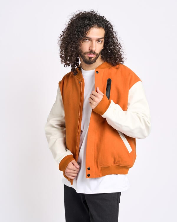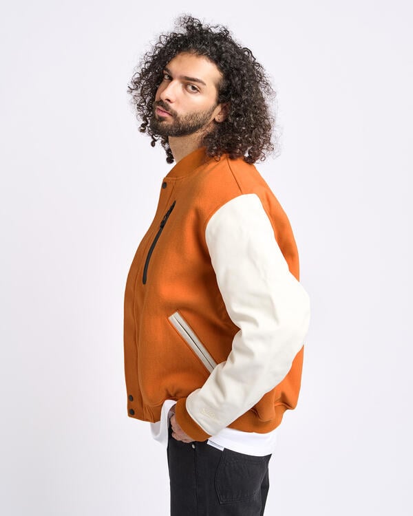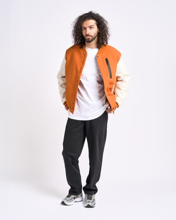The Destroyer jacket brings luxury to an iconic silhouette. Full-grain leather in the arms pairs with the wool body for that always on varsity look. Inside, a smooth woven lining keeps things sleek and comfortable.