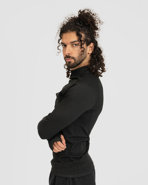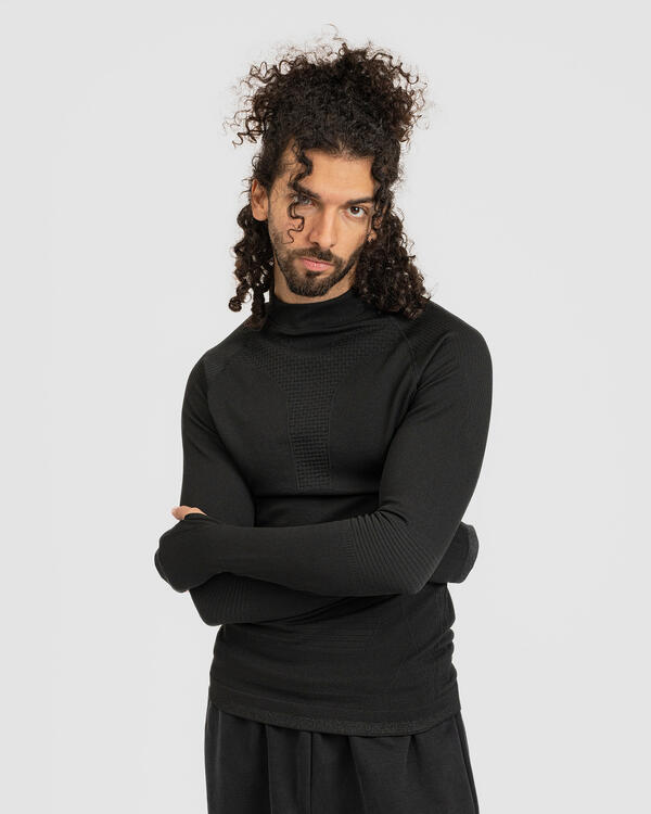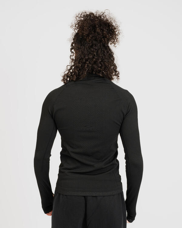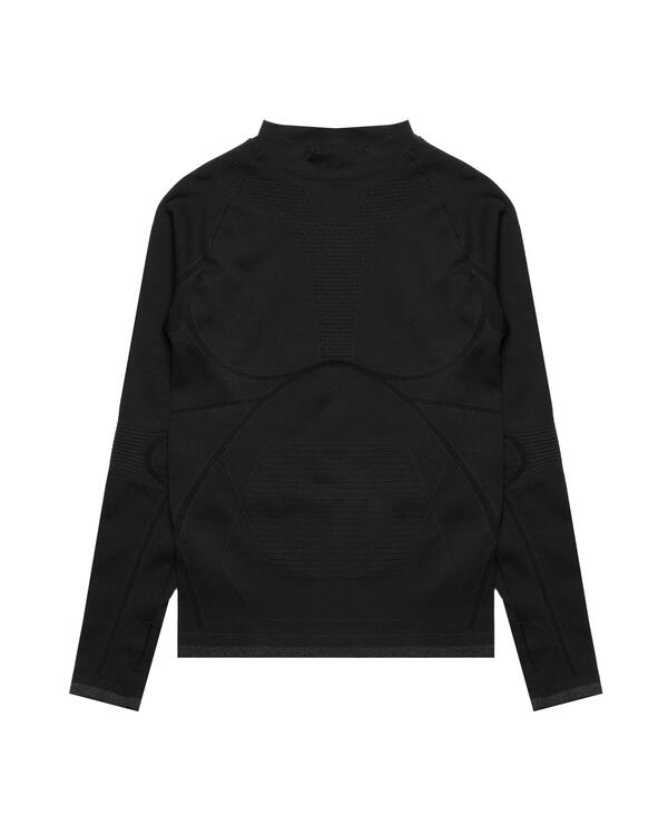 This knitted base layer offers optimal freedom of movement and supports your muscles. An indispensable part of your sports wardrobe for peak performance. With its figure-hugging, skin-tight fit and mesh inserts, it not only keeps you warm in colder conditions, but also offers the breathability and thermoregulation you need to stay fresh and dry during all activities and temperatures. In addition to practical thumbholes that keep the top in place, the cuffs and hem feature reflective trim. A simple ellipse logo is embroidered on the collar.