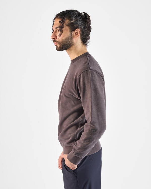 The Garda Crewneck draws inspiration from classic vintage sweatshirts, blending timeless aesthetics with modern craftsmanship. It features a tonal puff-print logo on the left chest and a fade-out wash for a soft, worn-in look. Crafted in Portugal from 100% organic cotton American fleece, it offers superior comfort and durability. The carbon finished fabric enhances its softness, and the relaxed fit makes it perfect for everyday wear.