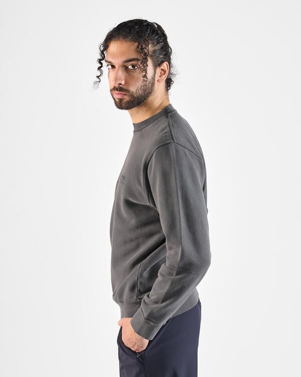 The Garda Crewneck draws inspiration from classic vintage sweatshirts, blending timeless aesthetics with modern craftsmanship. It features a tonal puff-print logo on the left chest and a fade-out wash for a soft, worn-in look. Crafted in Portugal from 100% organic cotton American fleece, it offers superior comfort and durability. The carbon finished fabric enhances its softness, and the relaxed fit makes it perfect for everyday wear.