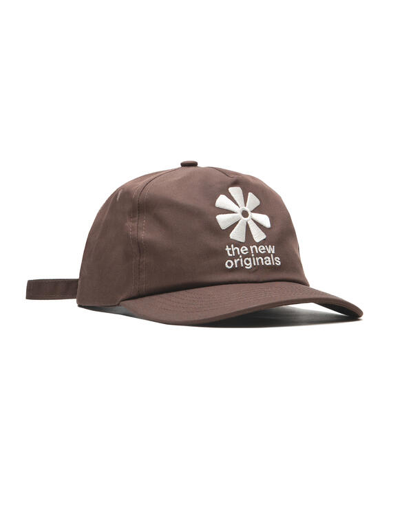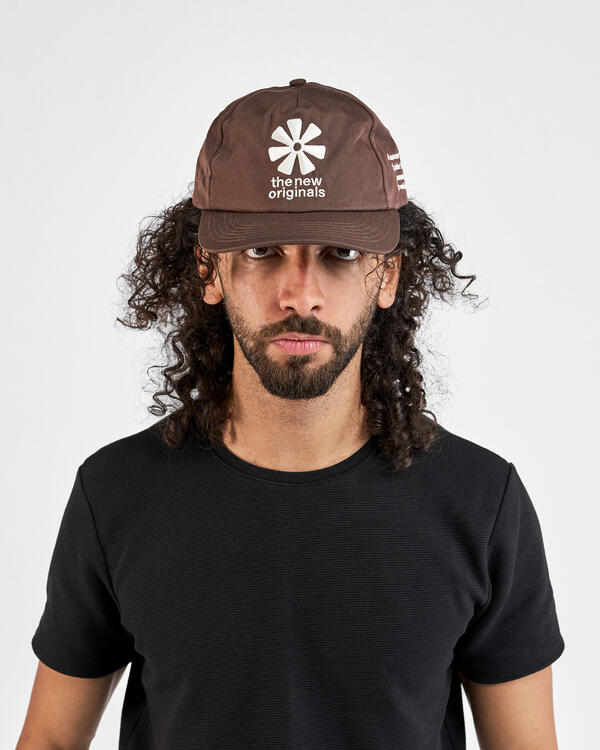 The Ananse Adinkra Cap in Acid Brown features the Ananse Ntentan symbol embroidered on the front, representing the spider’s web, an Adinkra sign from West Africa symbolizing creativity.