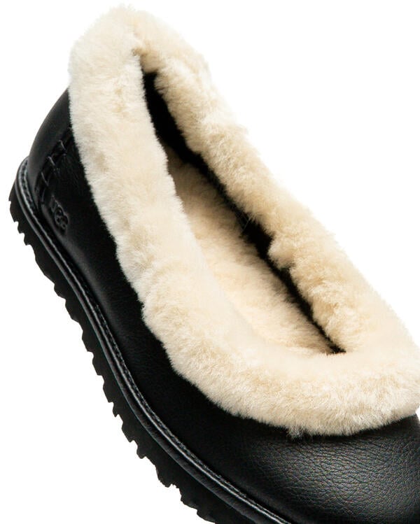 With our Zola, you're guaranteed to make a stylish entrance. We've taken everything you love about flat ballerina shoes and combined it with the signature UGG design: a leather upper, a plush lambskin insole, and a lightweight EVA sole made from sugarcane.